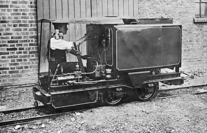De eerste en kleinste hydroleumlocomotief, een mijnlocomotief voor Zuid-Afrika van onbekend fabrikaat uit 1903. Foto: Deutsche Fototek.