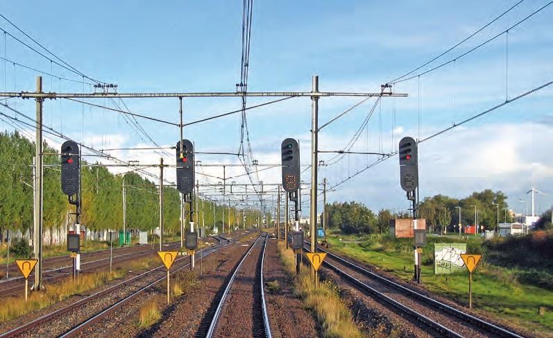 Seinfront aan de zuidzijde van de Hemtunnel, met onder de seinen de lichtbakken van het X-G-regime;2 november 2006.De borden met tunnelsymbool zijn inmiddels vervallen Foto: Kees Cremer.