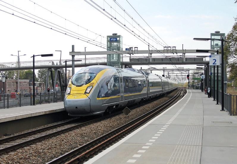 Een groot aantal testritten vormt vast onderdeel van de toelatingsprocedure, waarbij het materieel op plaatsen komt waar het in de normale dienst niet te zien zal zijn.Dat geldt voor dit Eurostartreinstel bij doorkomst in station Halfweg-Zwanenburg op 4 mei 2016. Foto: Marc Kessen.