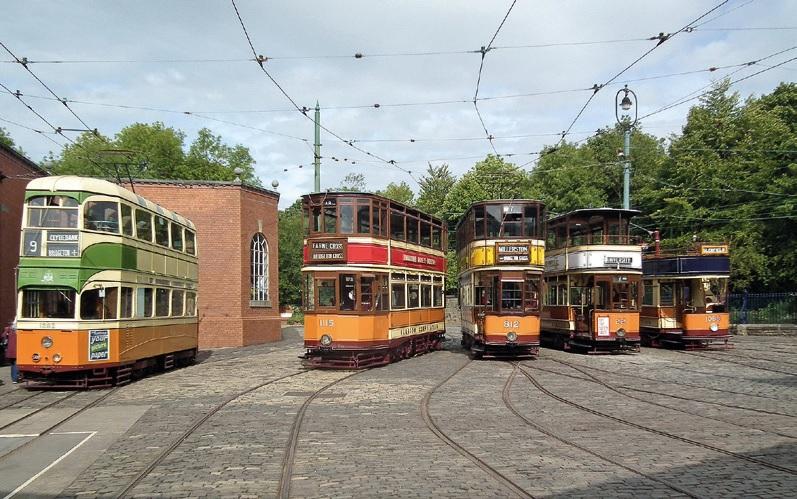 De meest opvallende toepassing van lijnkleuren was te vinden in Glasgow. De beplating onder de ramen van het bovendek van de trams was geschilderd in de kleur van de lijn of lijnenbundel. De opstelling van historische trams in het National Tramway Museum in Crich geeft daarvan een beeld. Later is overgegaan op het gebruik van lijnnummers en kregen alle trams de beschildering zoals de Coronation links; 15 september 2012.Foto: Steve Kemp.