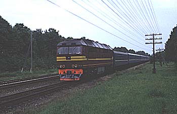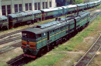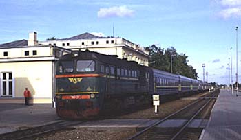 De vele grenspassages worden een vast ritueel, dat uiteindelijk met ‘ieder in zijn eigen hok’ het beste blijkt te werken: de douane werpt een blik in de coupé, de douanehond snuffelt wat onder de banken, de paspoorten worden gestempeld en tot besluit vindt men het allemaal wel goed. In Liepaja vinden we straten met kinderhoofdjes en houten huizen. De in felle reclame-kleuren gestoken trams detoneren enigszins. Het station is prachtig opgeknapt, maar… er komt geen enkele reizigerstrein meer! De middagexcursie langs de kust naar Ventspils gaat per bus naar een openluchtmuseum met smalspoor-stoomtrein. Het dagelijkse optreden van het ‘Dzherelo’-muziekgroepje loopt al weer op een eind als de trein rond middernacht in Riga aankomt, waar het voorstadsstation Zemitani onze basis wordt. De Letse hoofdstad is een belangrijke haven- en industriestad. Natuurlijk bezoeken we de grote fabriek van spoorwegmaterieel RVR. De stoffige hallen getuigen van de diepe economische crisis en liggen bezaaid met onderdelen. Toch probeert men de draad weer op te pakken, deels met revisie, deels met nieuwbouw. Bij het locdepot van Riga biedt vooral de voetbrug een imposant uitzicht: lange goederentreinen worden geheuveld op het rangeerterrein en grote diesellocs rijden af en aan. Dit is nog een écht spoorwegbedrijf!
