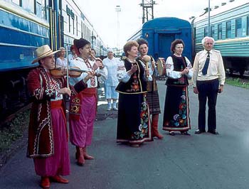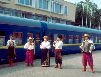 Aldaar is er de volgende morgen de kennismaking met de ‘Dzherelo’-trein, de Oekraïense hoteltrein, die de komende 9 dagen ons thuis zal zijn. Voor velen is het een weerzien met goede bekenden onder het vele personeel, voor een enkeling misschien toch even wennen. De ontvangst op het emplacement van Kaliningrad is in elk geval feestelijk en gaat gepaard met een eerste optreden van het ‘Dzherelo’-muziekgezelschap, dat ’s avonds na het diner wordt voortgezet. Wie had ooit gedacht dat NVBS-leden nog eens op een emplacement in de voormalige Sovjet-Unie tussen de rijtuigen stonden te dansen? Een tafereel dat zich de volgende avonden – al dan niet rijdend – in het salonrijtuig zal herhalen.