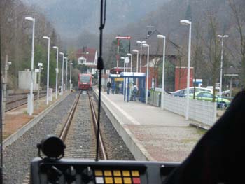 In moderne Dostos (Doppelstockwagen) reden we naar Düren en vandaar met een RegioSprinter (niet te verwarren met de modernere RegioShuttle) naar Heimbach. De enkelsporige Rurtalbahn is een mooi lijntje dat het kronkelende riviertje de Rur volgt het Eifelgebergte in. Na de in Heimbach opgestelde veelkleurige RegioSprinters te hebben gefotografeerd reden we weer terug naar Düren. Daar had de RegionalExpress naar Aachen wat vertraging, wederom wegens Bauarbeiten.