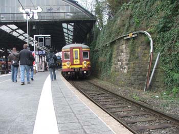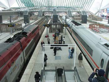 Om 16.34 uur namen we een oud NMBS-treintje naar Liège/Luik/Lüttich. Na een uurtje boemelen door vele valleien, over bruggen en door talloze tunnels stonden we opeens middenin het moderne station van Liège Guillemins. Hier konden we wat eten en van bovenaf enkele exoten, dit keer een kruisende Thalys en ICE, vastleggen. In trein R5369 terug naar Nederland vroegen we in ons beste Frans aan de machinist of we voorin mochten meekijken, wat geen probleem was.