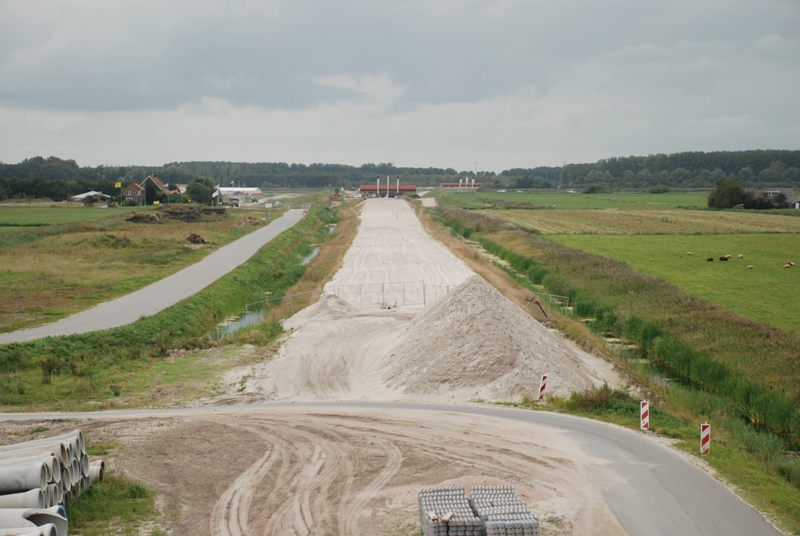 Volgend hoogtepunt was de tunnel bij het Drontermeer. Ingewikkeld is het hier omdat de lijn aan beide zijden van het meer de waterkeringen doorsnijdt. Voor de bouw zijn daarom kanteldijken rondom de tunnelbak aangelegd. Om risico′s bij lek van de tunnel uit te sluiten blijven die kanteldijken in de toekomst gewoon gehandhaafd. Extra complicatie vormt de nieuw aan te leggen bypass van de IJssel rond Kampen. Helaas konden we slechts van een afstandje naar de tunnel kijken, en tot overmaat van ramp kwamen er net op dat moment ook nog een paar drupjes naar beneden. Met frisse moed ging het verder via het toekomstige station Kampen Zuid, de kruising met de N50 en de tweede kruising met de bypass. Gewijde grond, want ooit reden vanaf het eerste station Kampen Zuid de trein richting Apeldoorn en de tram richting Nunspeet.