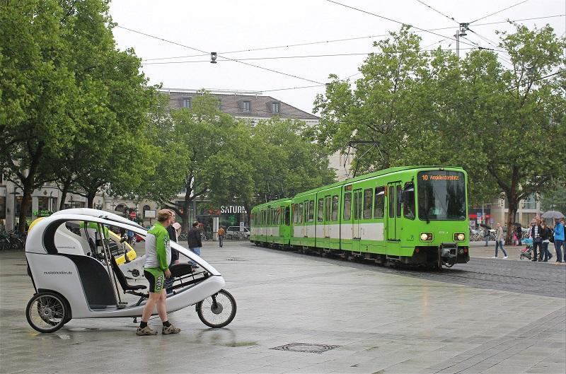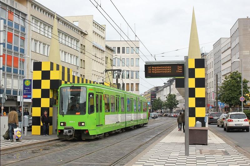 Daarna ging het verder naar de ondergrondse halte Steintor waar vandaan de Jongeren door de binnenstad van Hannover terug liepen naar het Hauptbahnhof. Onderweg konden nog diverse trams worden gefotografeerd waaronder een blauwe Werbewagen met reclame voor een grote meubelzaak.