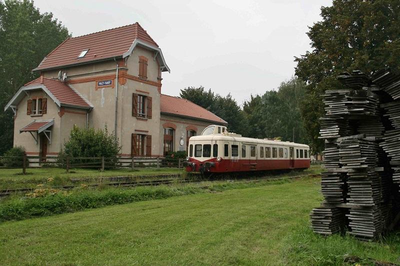 Na een wandeling nemen we plaats in de gereedstaande Picasso-trein van de CFTSA (Chemin de Fer Touristique du Sud des Ardennes) met bovenop de kenmerkende stuurstand van de machinist. Helaas is recentelijk de maximumsnelheid voor dit traject begrensd tot 20 km/u, zodat wij over het 40 km lange traject wel even onderweg zijn. De stemming onder de deelnemers is er niet minder om. De rit voert door het uitgestrekte verlaten landschap wat door oorlogsverledens in dit gebied is ontstaan.