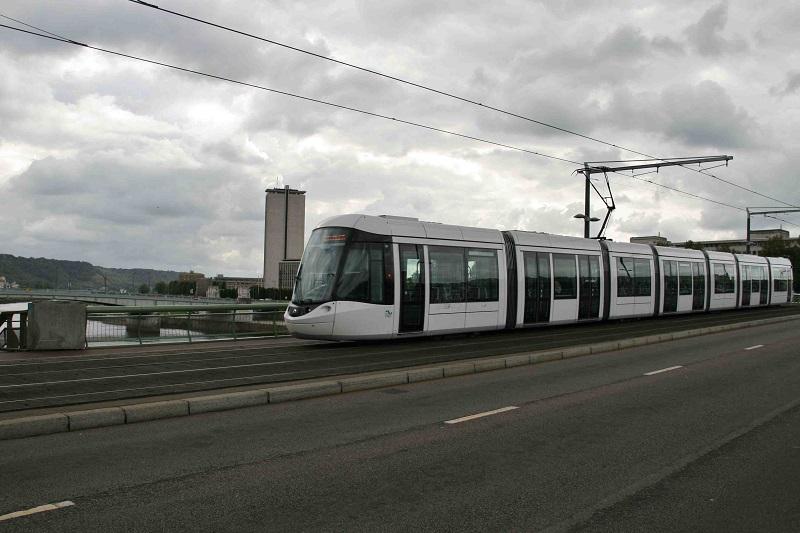 In Rouen gaat de tram over de Seine, juist voor hij ondergronds gaat, 31 augustus 2014. Foto: Karel Koploper.