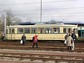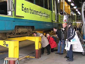 Met een extra tram werd een slag naar Nieuwegein Zuid gemaakt. Op de terugweg werd de remise annex werkplaats van Connexxion bezocht, waar niet alleen trams, maar ook bussen worden gestald en onderhouden. Op het buitenterrein stond partytram 437 uit Bonn werkloos tussen het reservematerieel; door veelvuldig optredende storingen mag het voertuig de baan niet meer op. De goede sfeer leed gelukkig niet onder deze jobstijding en een aantal deelnemers informeerde tijdens de laatste excursiekilometers naar de details van nog te organiseren SNE-reizen.