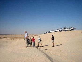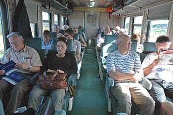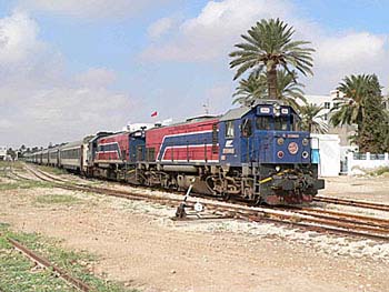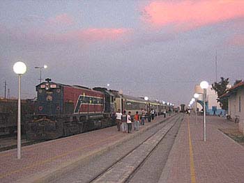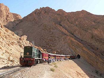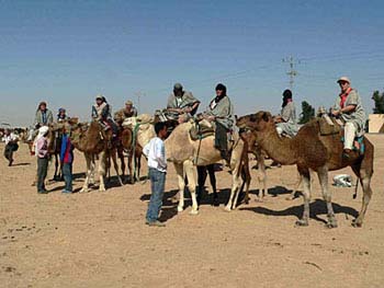 In de trein reizen we met de carte bleue, een abonnement dat respect afdwingt bij conducteurs en medereizigers. Treinen van Hongaarse makelij, verkregen in een tijd van actieve ruilhandel, verkeren niet altijd in goede staat, maar als het niet in de fik staat, rijdt het best. Die fik was overigens best spannend, voor je gevoel sta je ineens stil in het pikkedonker van de woestijn. Uit de belendende wagons komen dikke rookwolken op je af, maar als vanzelfsprekend is de comfortklasse vrij van ongemakken. De dromedaris is bij uitstek geschikt voor zinderend zand en kent slechts één klasse: de hobbelklasse. We hobbelen gezellig achter elkaar aan en hebben onderhoudende gesprekken met de kamelendrijver.