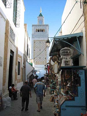 Terwijl ik dit verslag schrijf van de Tunesië-reis, die 37 deelnemers van 20 oktober t/m 2 november 2006 maakten, zitten de geplette dadels nog muurvast in het profiel van mijn schoenen, stug spul! Een klein souvenir van de reis, die zich kenmerkte door de verscheidenheid aan gebruikte transportmiddelen. We trekken het land binnen tijdens het einde van de ramadan en het daarop volgende Suikerfeest, wat ons de gelegenheid biedt het straatleven te verkennen. Inderdaad is er veel zoetigheid te koop en heeft elk dorp wel een eigen kermisje met hand-aangedreven attracties.
