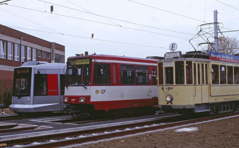 Drie generaties tram in Benrath. Foto: Han Duijve.