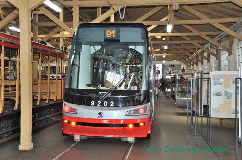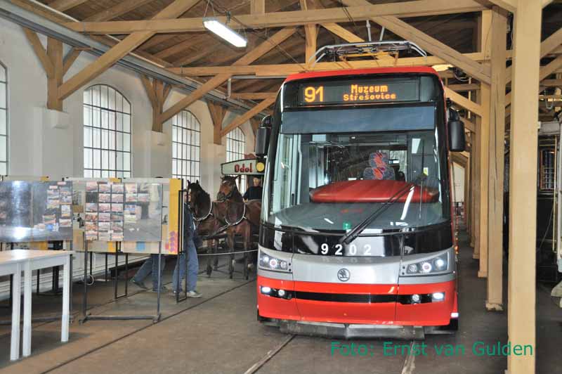 De voorkant van de Skoda 15T in het trammuseum van Praag, 19 februari 2011. Foto: Ernst van Gulden.
