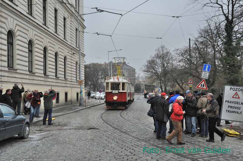 Een tramrit met twee museumtramstellen op zaterdag vormt de afsluiting van het bezoek aan Praag, waarbij een groot deel van het net in de schitterende binnenstad wordt bereden en ook het omvangrijke trammuseum wordt bezocht. De modelspoorliefhebbers kunnen eventueel vroeg opstaan voor een kort bezoek aan een modelspoorbeurs bij het Masarykovo-station. Per intercity gaat het vervolgens naar Brno, waar opnieuw een vrije dag is en de groep zich opsplitst in diverse interessegebieden: het trambedrijf met een grote variatie aan materieel, de fraaie stad met opvallende klassieke en moderne architectuur of toch nog weer een treinrit in de omgeving. Intussen heeft de zon zich de afgelopen dagen nog niet vertoond en is het soms onaangenaam koud. En sneeuw is er vrijwel helemaal niet…