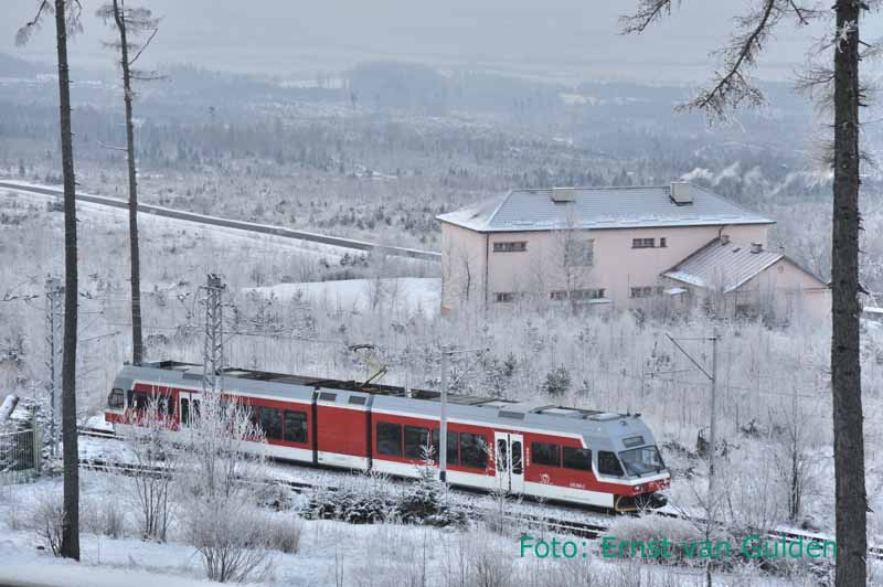 Op maandag 21 februari reizen we dan van Brno via Bratislava naar het Tatra-gebergte in Slowakije. Zelfs daar ligt relatief weinig sneeuw, maar is het wel ijzig koud en… er schijnt een stralende zon. Werkelijk schitterend zijn de dik berijpte bomen, een gevolg van de nachtelijke mistbanken. Indrukwekkend zijn verder de nog zichtbare gevolgen van een orkaan vier jaar geleden, die grote percelen bos heeft neergehaald. We maken vanuit een comfortabel hotel in Starý Smokovec kennis met het moderne Zwitserse materieel van de elektrische meterspoorlijnen en maken de volgende dag een prachtige excursie met de historische ‘Kométa’. De rit begint na een bezoek aan de werkplaats in Poprad, waar ook het oudere materieel en enkele andere museumwagens te zien zijn. De rit omvat diverse fraaie fotostops en ‘s middags kan eventueel op eigen gelegenheid worden teruggereisd. Dat laatste kan dan worden gecombineerd met een wandeling door het sprookjesachtige landschap of een bezoek aan de tandradlijn van Štrbské Pleso naar Štrba. En wie aan het eind van de dag verkleumd is, kan in de sauna van het hotel weer bijkomen.