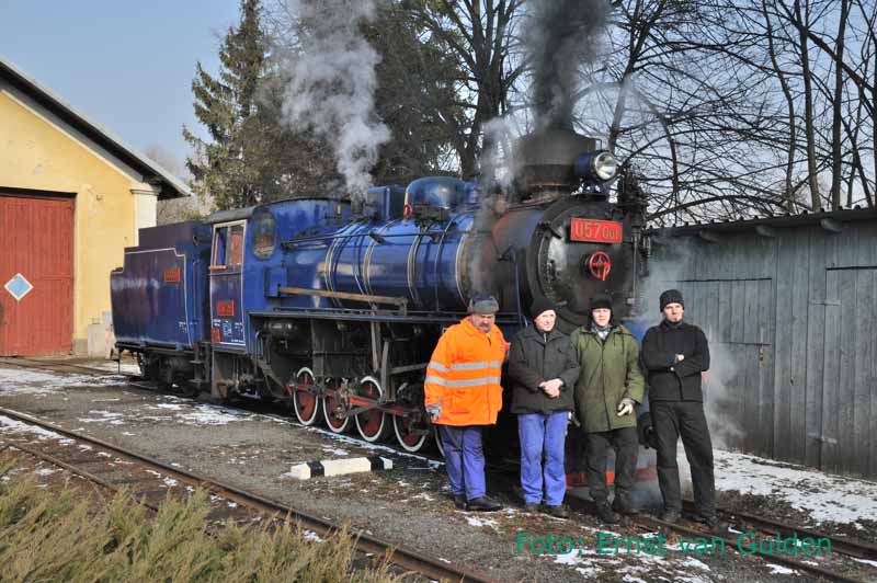 Het personeel van onze trein voor de U57.001. Osoblaha, 24 februari 2011. Foto: Ernst van Gulden.