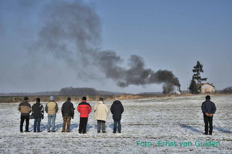Landelijk tafereel in Bosice bij aankomst van de excursietrein uit Kourim, 18 februari 2011. Foto: Ernst van Gulden.