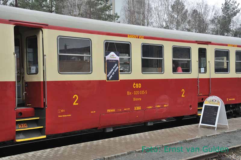 Als tweede rijtuig was er een bijwagen van het type Bix als buffetwagen ingericht. Sazava, 18 februari 2011. Foto: Ernst van Gulden.